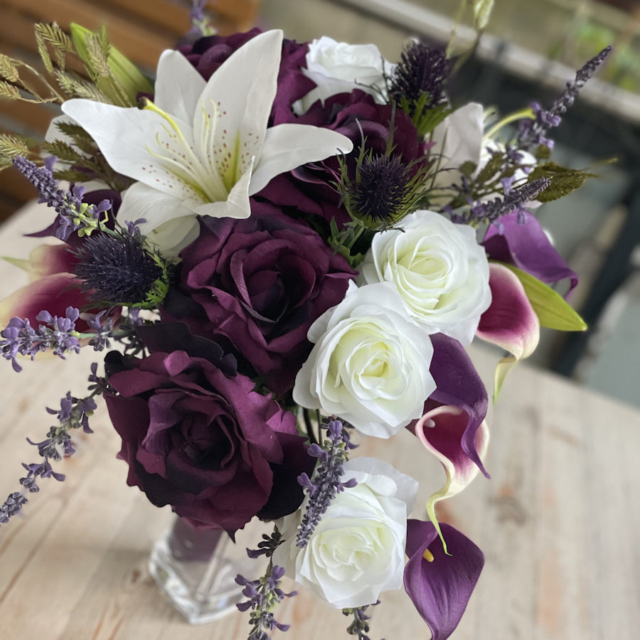 Dann ist ein Brautstrauß aus hochwertigen Seidenblumen die perfekte Wahl.